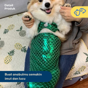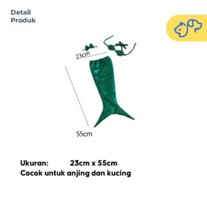 Kostum ini dilengkapi dengan ekor berkilau, bra yang menggemaskan, dan aksesori kepala yang cantik, siap mengubah anabul jadi putri laut yang mempesona.