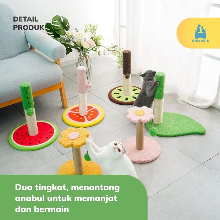 Garukan Kayu Kucing Bentuk Buah Bunga motifnya sangat lucu cocok untuk diletakan di salah satu sudut ruangan, struktur kokohl sehingga aman saat dimainkan.