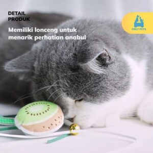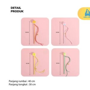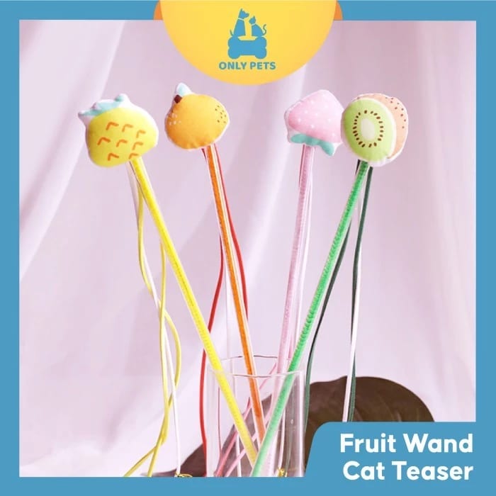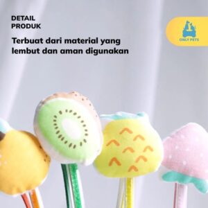 Fruit Wand Cat Teaser adalah mainan kucing yang berbentuk tongkat dengan berbagai macam bentuk buah yang unik, lucu, dan colorful. Pawparents bisa memilih sendiri bentuk dan juga warna sesuai selera untuk anabul kesayangan. Mainan ini memiliki panjang tongkat kurang lebih berukuran 30 cm dengan panjang rumbai 40 cm. Mainan ini dilengkapi dengan liontin lonceng yang dapat berbunyi untuk menarik perhatian anabul, sehingga cocok digunakan untuk menggoda anabul ketika hendak mengajaknya bermain.
