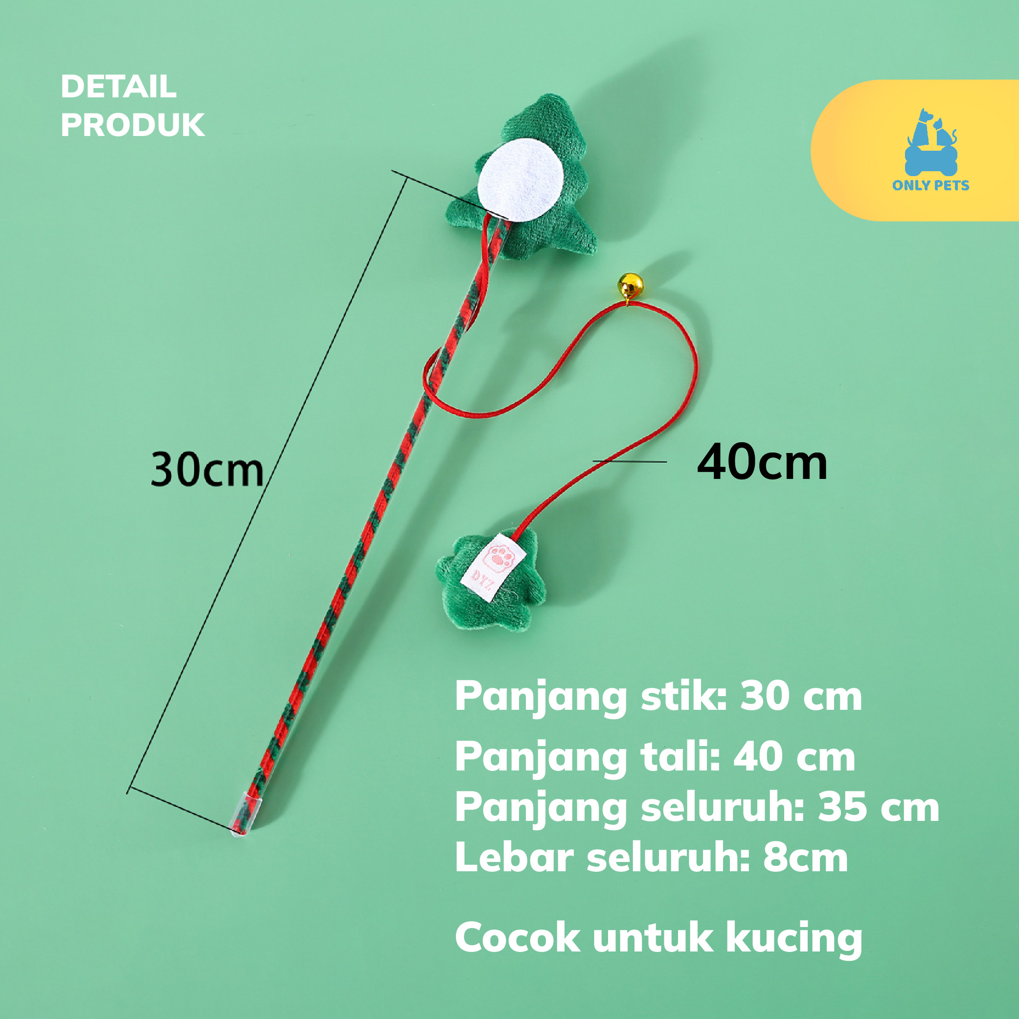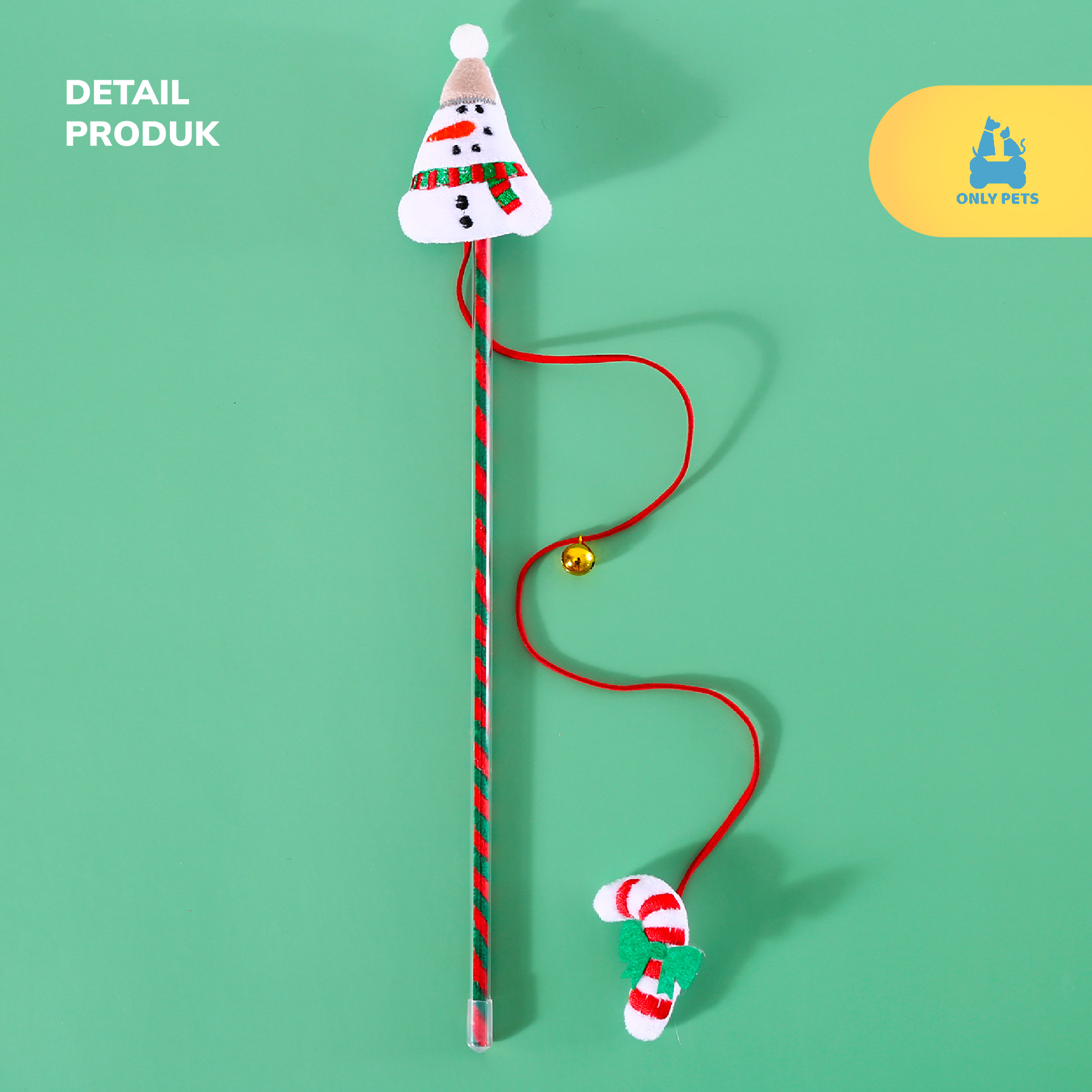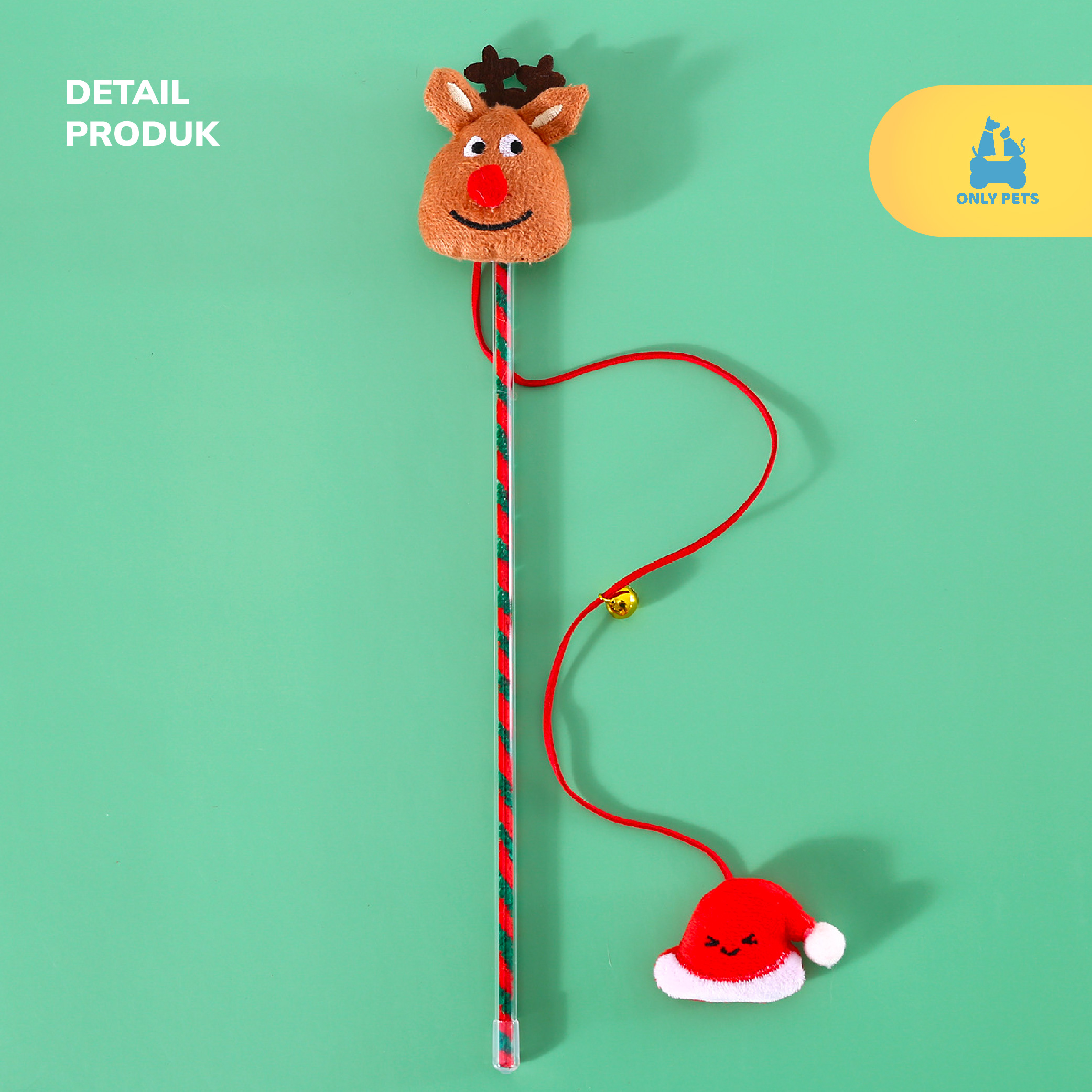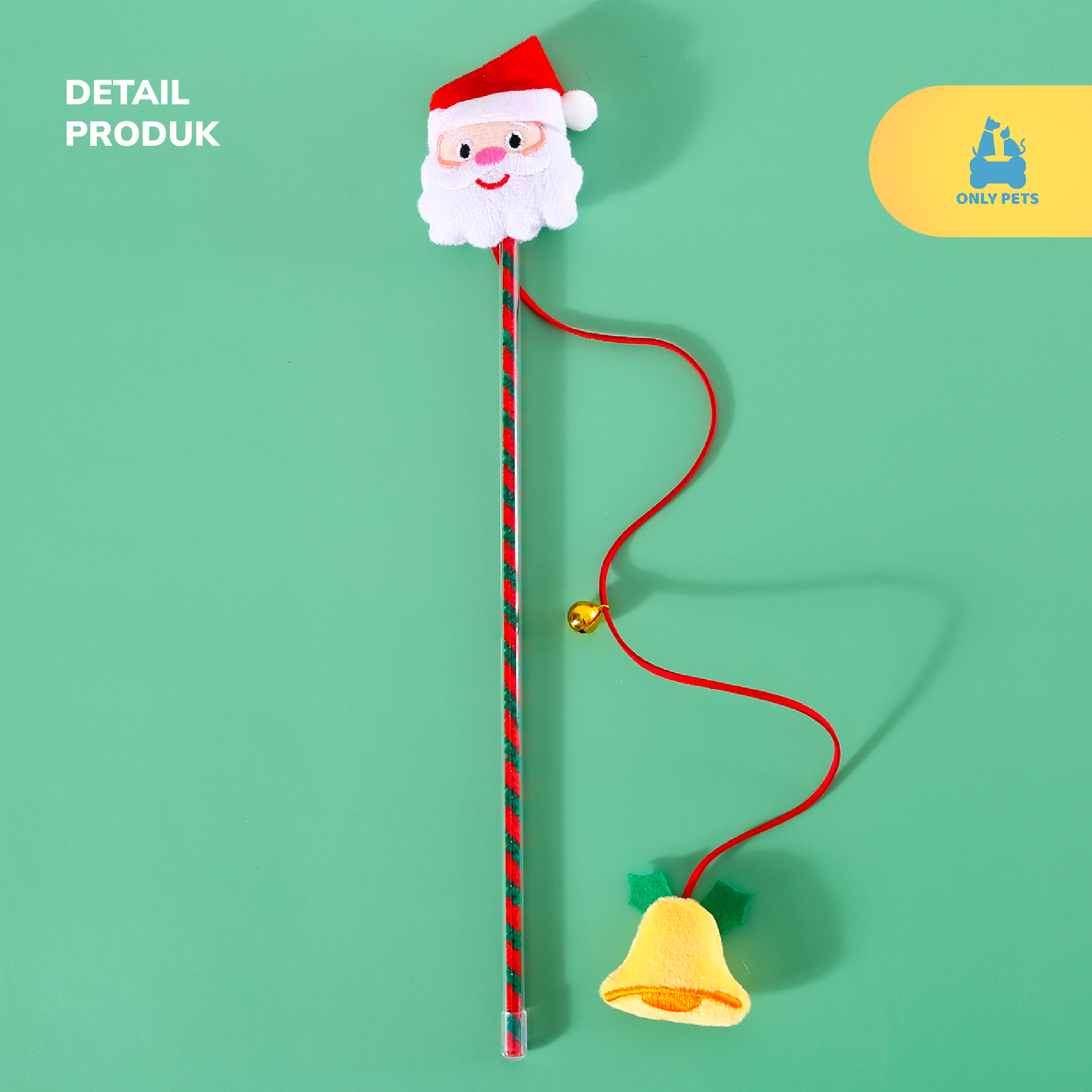 Dengan desain yang lucu dan sentuhan Natal yang menggemaskan, tongkat mainan kucing edisi Natal ini akan membawa sukacita dan kebahagiaan pada anabul kesayangan Pawparents. Dilengkapi dengan boneka lembut dan lonceng yang berdering, mainan ini akan memberikan hiburan tak terbatas untuk anabul yang suka bermain dan mengejar.