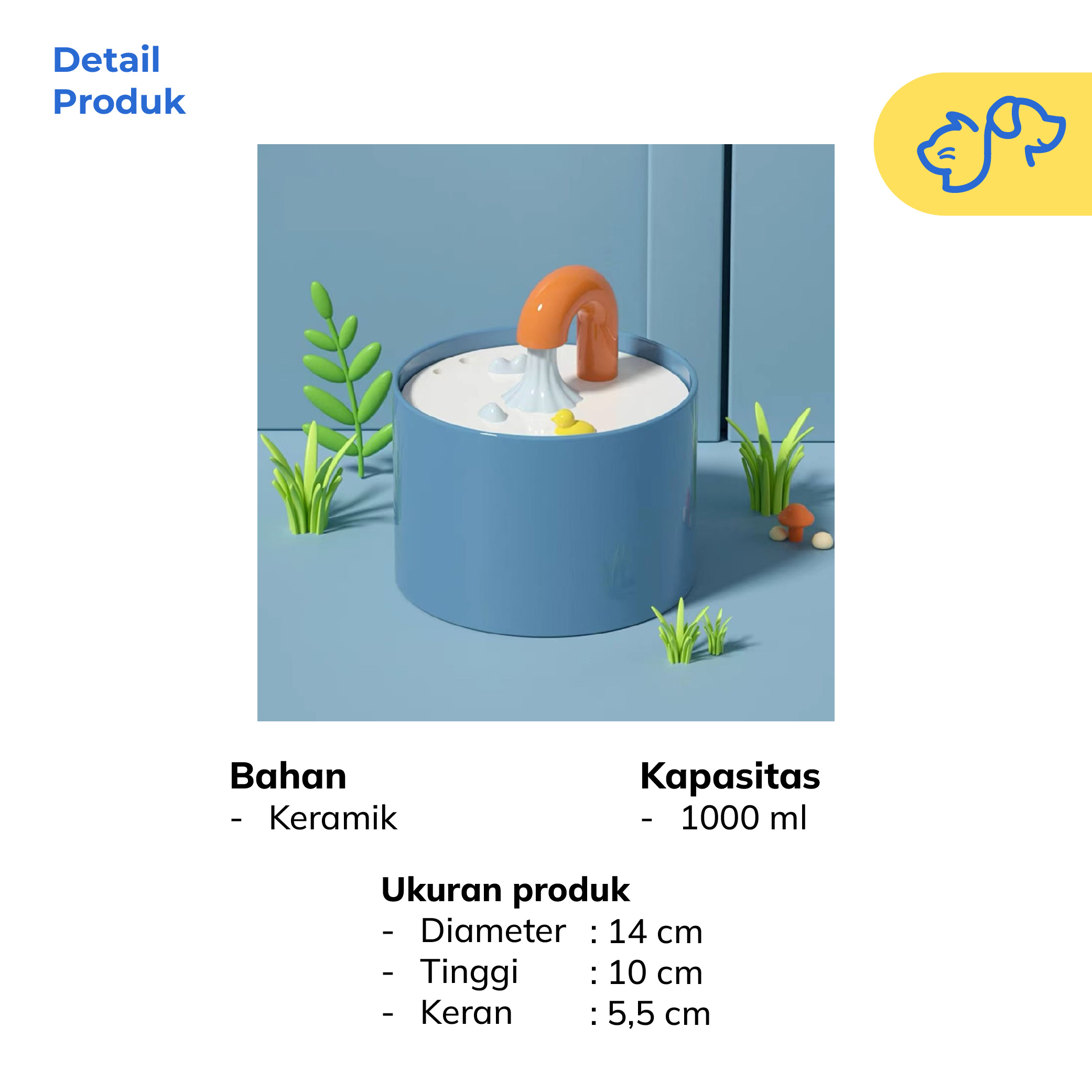 Material : Keramik (Tersertifikasi CCC Aman untuk hewan)