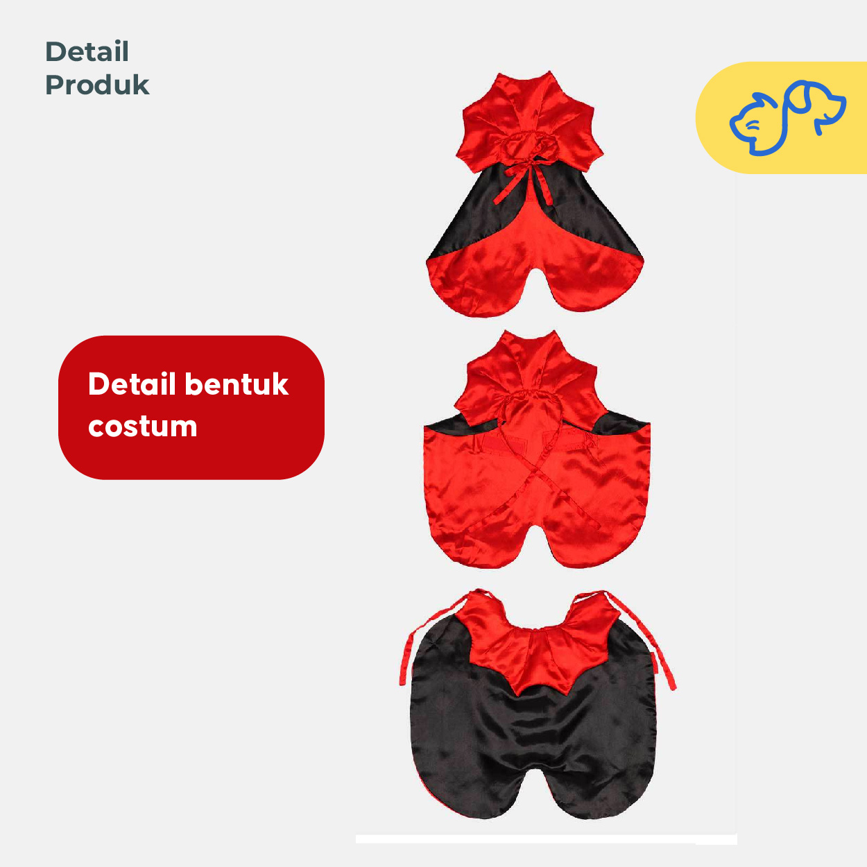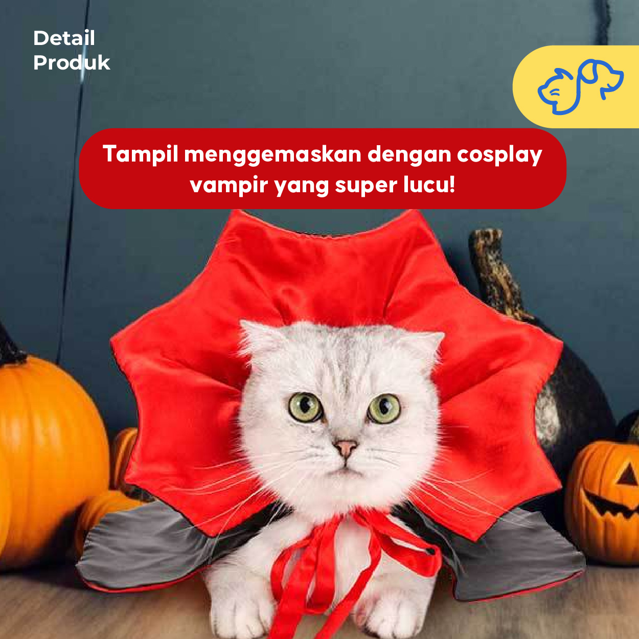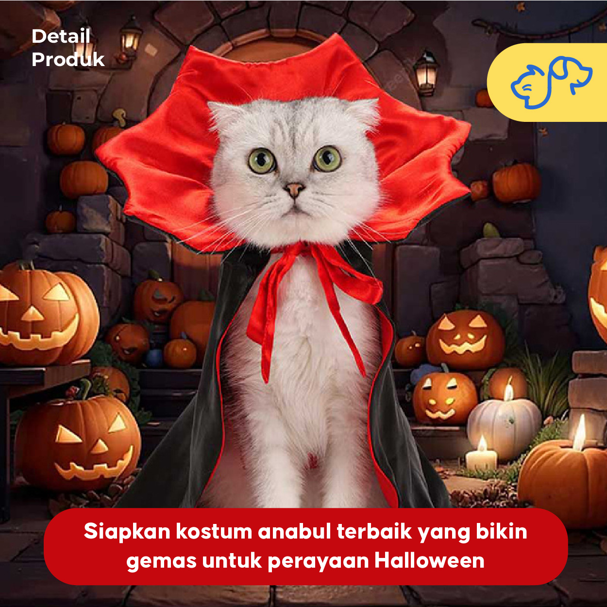 🧛♂️ Desain Vampir Klasik: Jubah hitam dengan kerah merah khas vampir yang akan membuat anabul terlihat misterius tapi tetap menggemaskan!