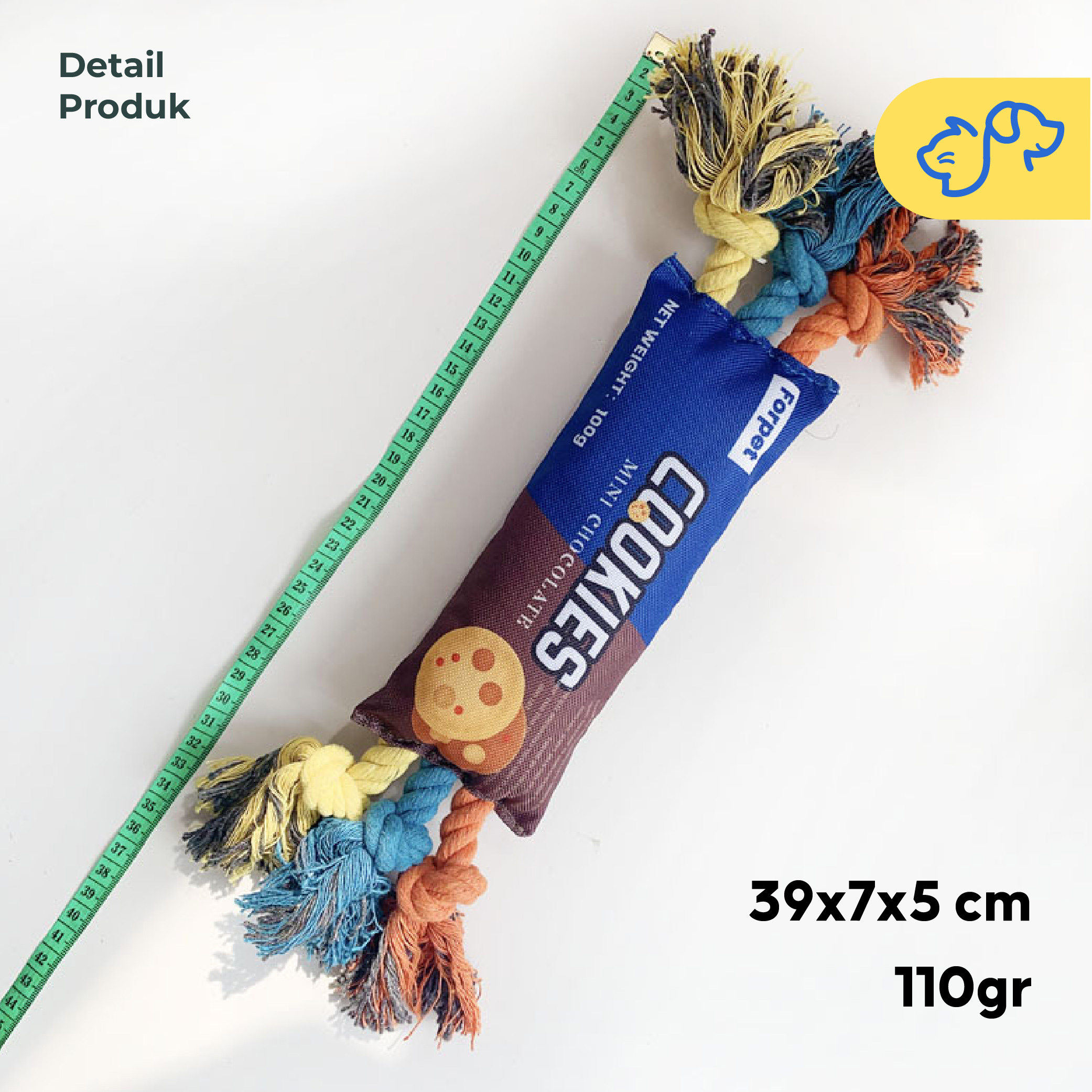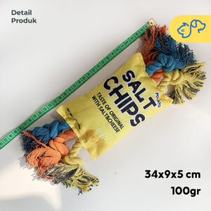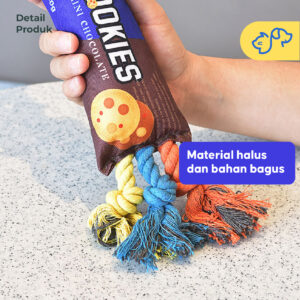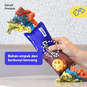 Mainan ini tidak hanya seru untuk dimainkan, tetapi juga membantu menjaga kesehatan gigi anabul dengan tali kuat yang pas untuk digigit. Bentuknya yang menyerupai kemasan snack pasti menarik perhatian anabul dan membuat waktu bermain lebih menyenangkan!