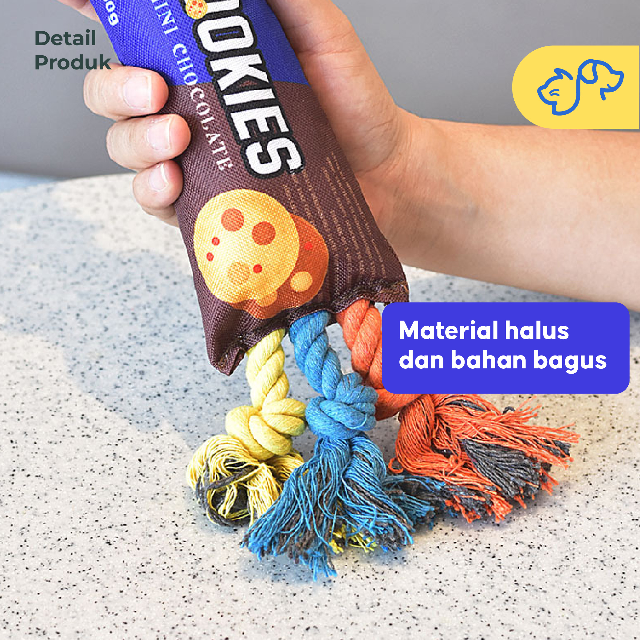 Mendukung Kesehatan Gigi — Tali yang kuat membantu membersihkan gigi dan gusi saat anabul menggigitnya.