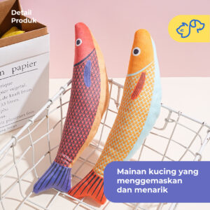 Desain Realistis & Menarik — Bentuk ikan yang menyerupai asli membuat anabul lebih tertarik untuk bermain.