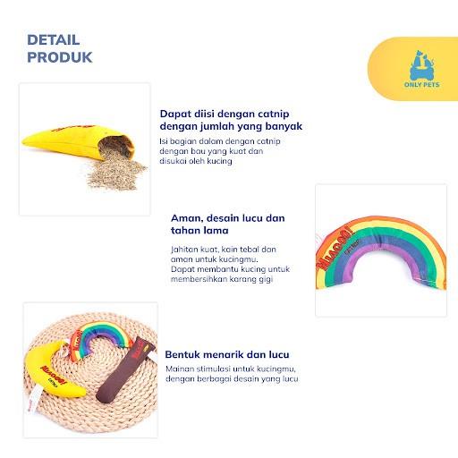 Cat Stuffed Catnip Toy dari Only Pets ini merupakan mainan yang memiliki bentuk seperti boneka. Menariknya, bagian dalam dari mainan ini diisi penuh dengan catnip yang beraroma sangat kuat. Catnip merupakan tanaman herbal beraroma mint yang sangat disukai oleh anabul, khususnya kucing. Mainan ini dapat memberikan efek tenang dan bahagia pada anabul.