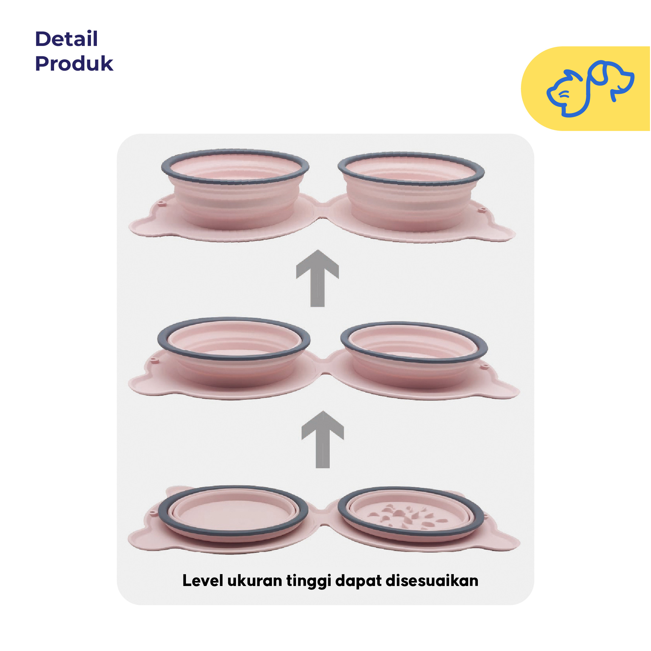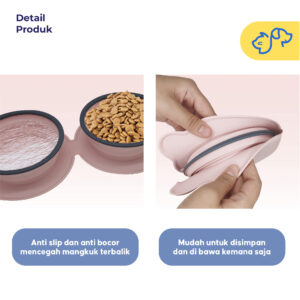 2 in 1 Multifungsi — Dilengkapi dengan dua mangkok, satu untuk makanan dan satu lagi untuk air, sehingga anabul tetap terhidrasi dan kenyang.