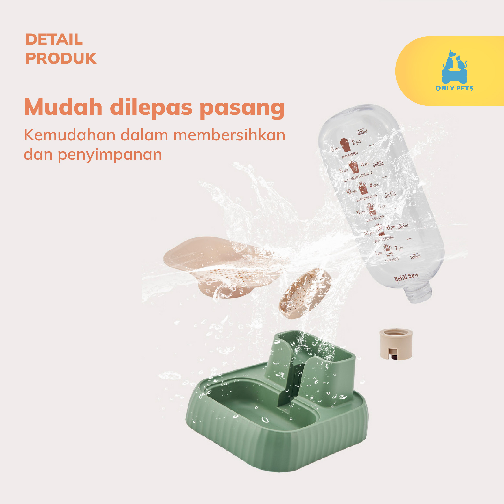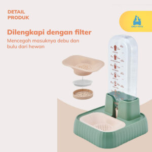 Dispenser ini dengan otomatis mengalirkan air secara konstan yang dapat membuat anabul tertarik untuk meminum air lebih banyak sehingga mencegah anabul dehidrasi. Dapat dibongkar pasang untuk memudahkan Pawparents membersihkan tempat minum ini.
