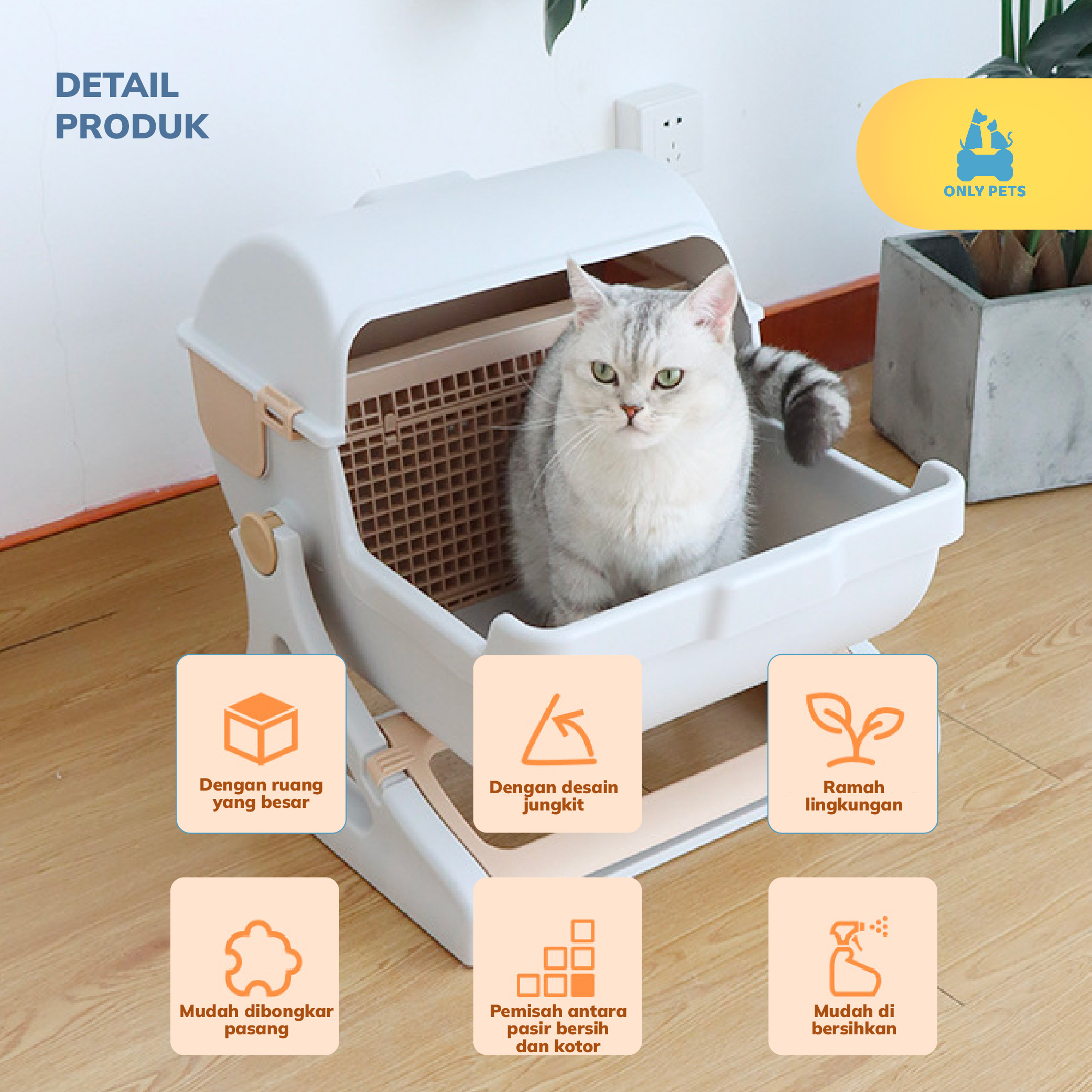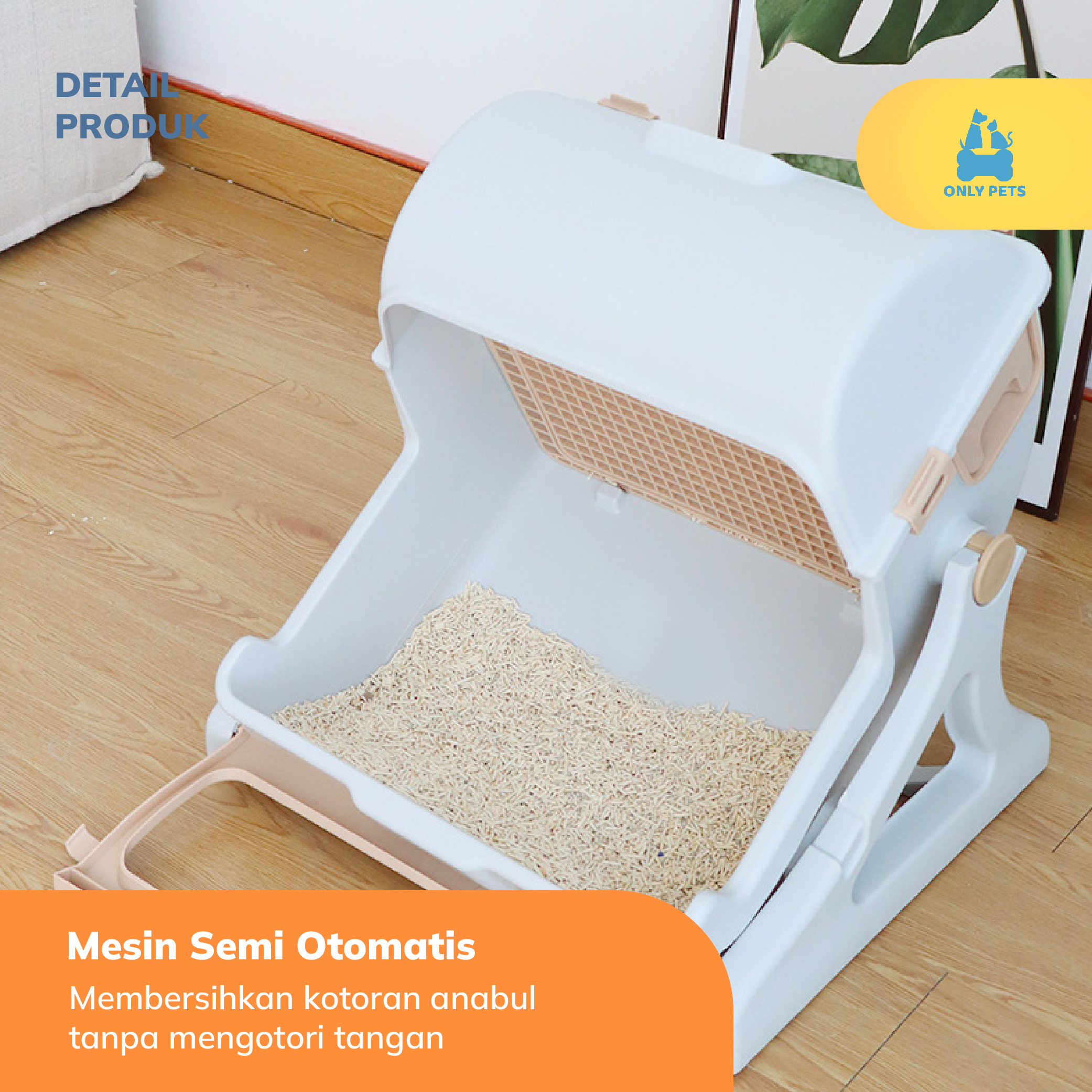 Rawat anabul Pawparents dengan mudah menggunakan Litter Box Kucing Semi Otomatis dari Only Pets. Desain inovatif memastikan lingkungan anabul tetap bersih tanpa repot. Dengan sistem penyaringan otomatis, kotoran akan terpisah dari pasir, memberikan kemudahan dalam pembuangan poopnya.