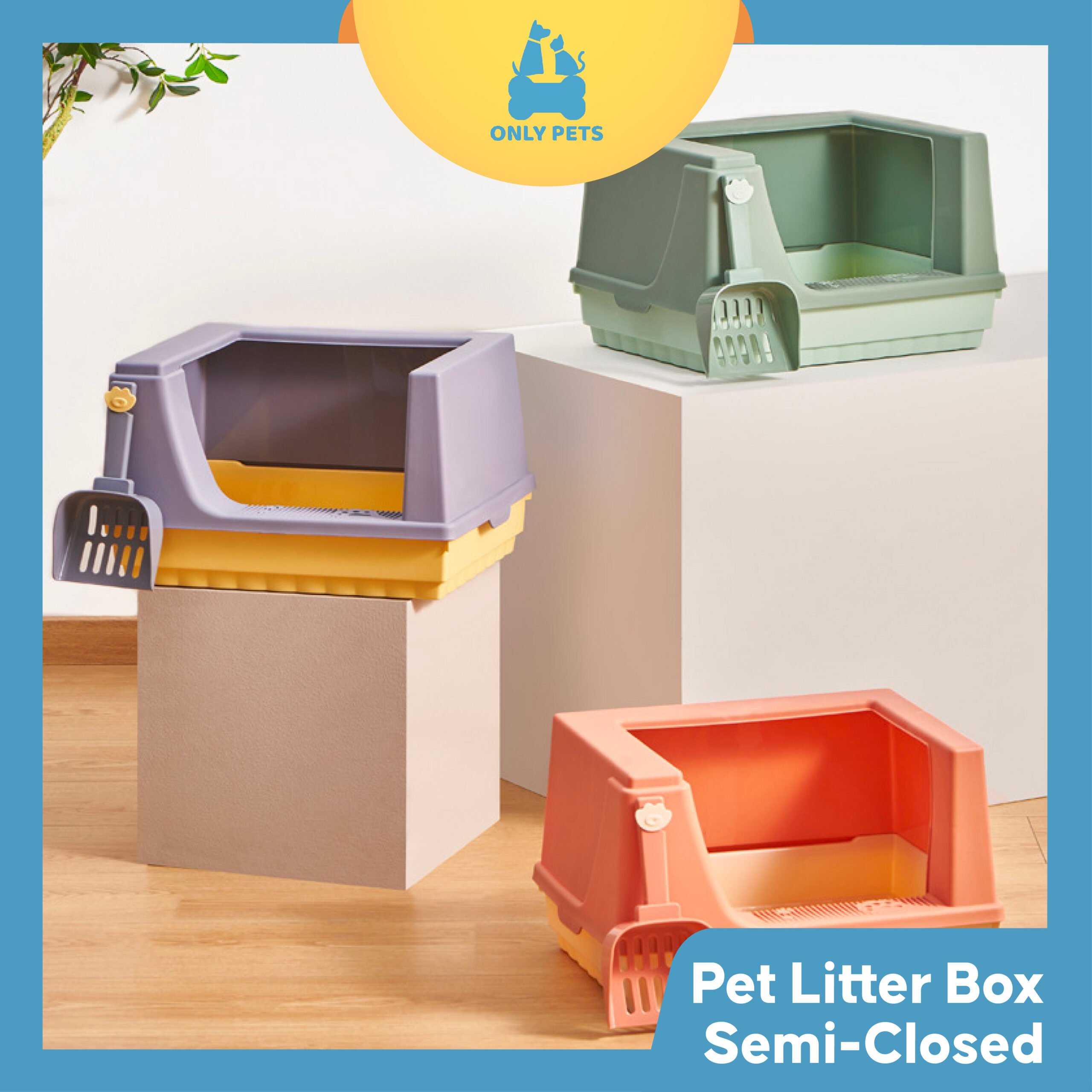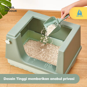 Kotak Pasir Semi Closed, kotak pasir ini memiliki desain yang dapat dibongkar pasang dengan mudah sehingga memberikan kamu kemudahan dalam membersihkan dan mengganti pasir anabul..