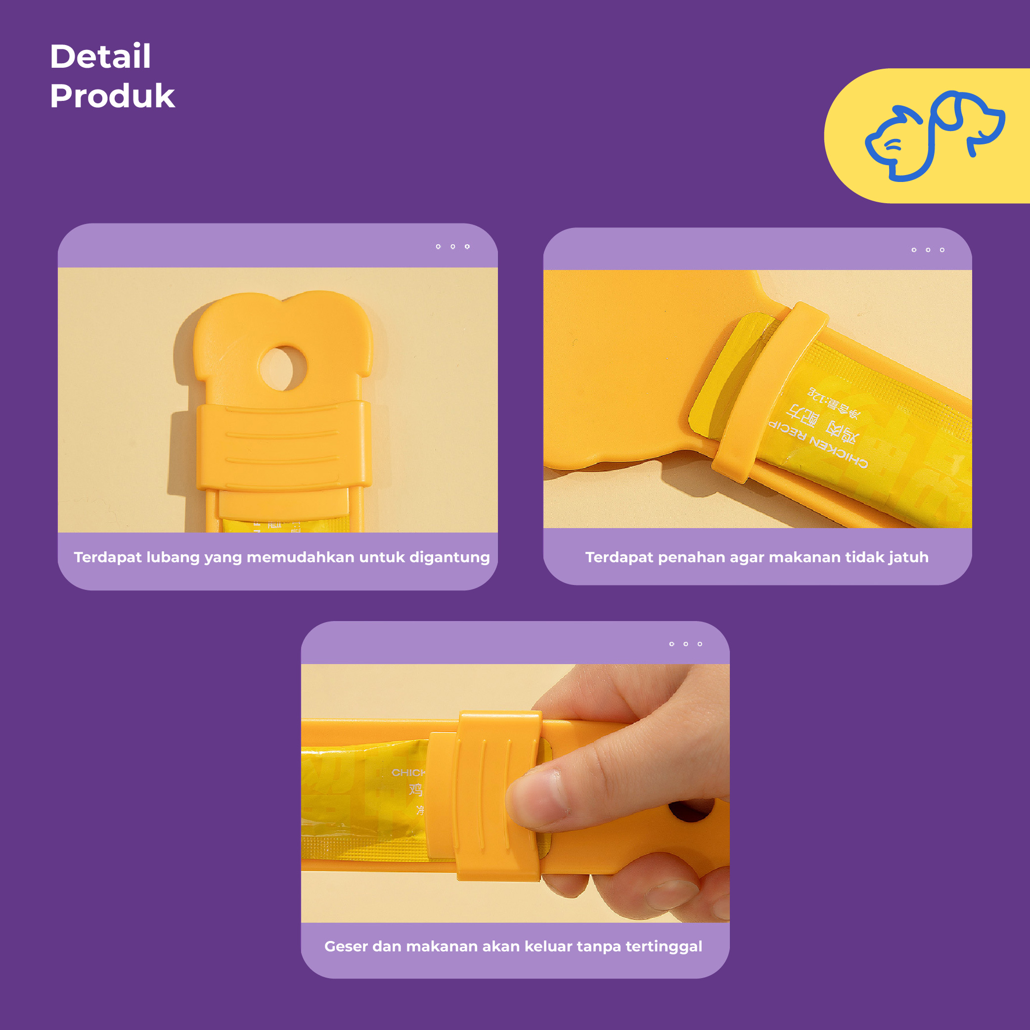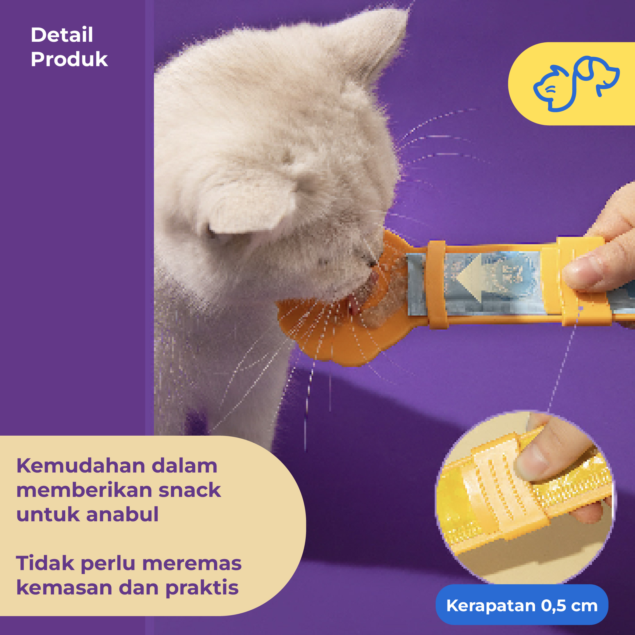 Sendok pendorong camilan, cara praktis memberikan treat untuk anabul kesayangan.