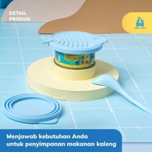 Alat ini merupakan penutup kaleng dan sendok yang digunakan untuk makanan kaleng anabul. Alat ini terbuat dari material silicone berkualitas yang sudah tersertifikasi food grade, sehingga sudah terjamin keamanannya, tidak beracun serta tidak berbau.