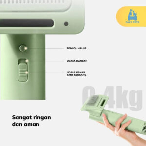 Alat ini memiliki kemampuan multifungsi yang dapat digunakan untuk mengeringkan sekaligus menyisir bulu anabul.