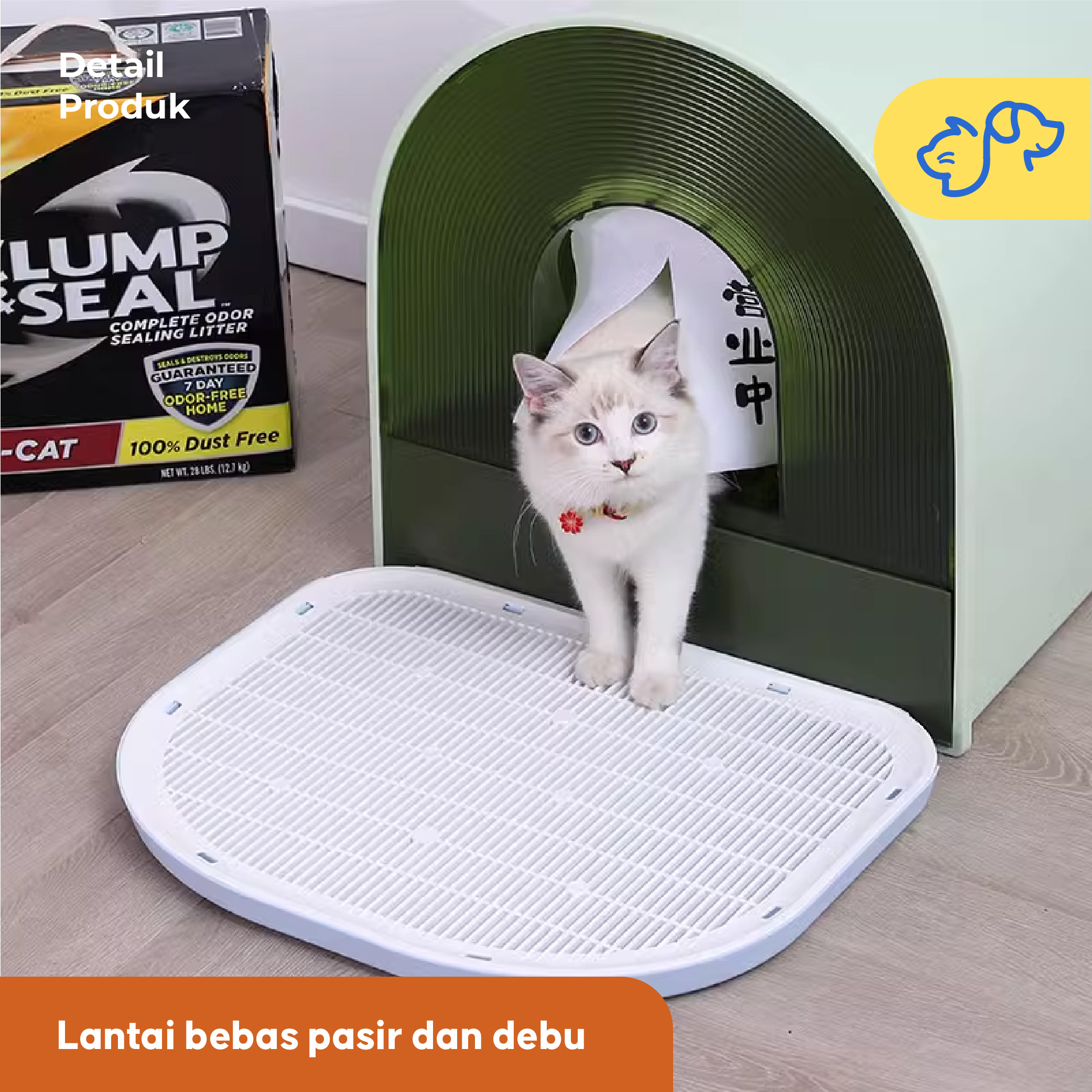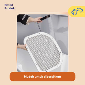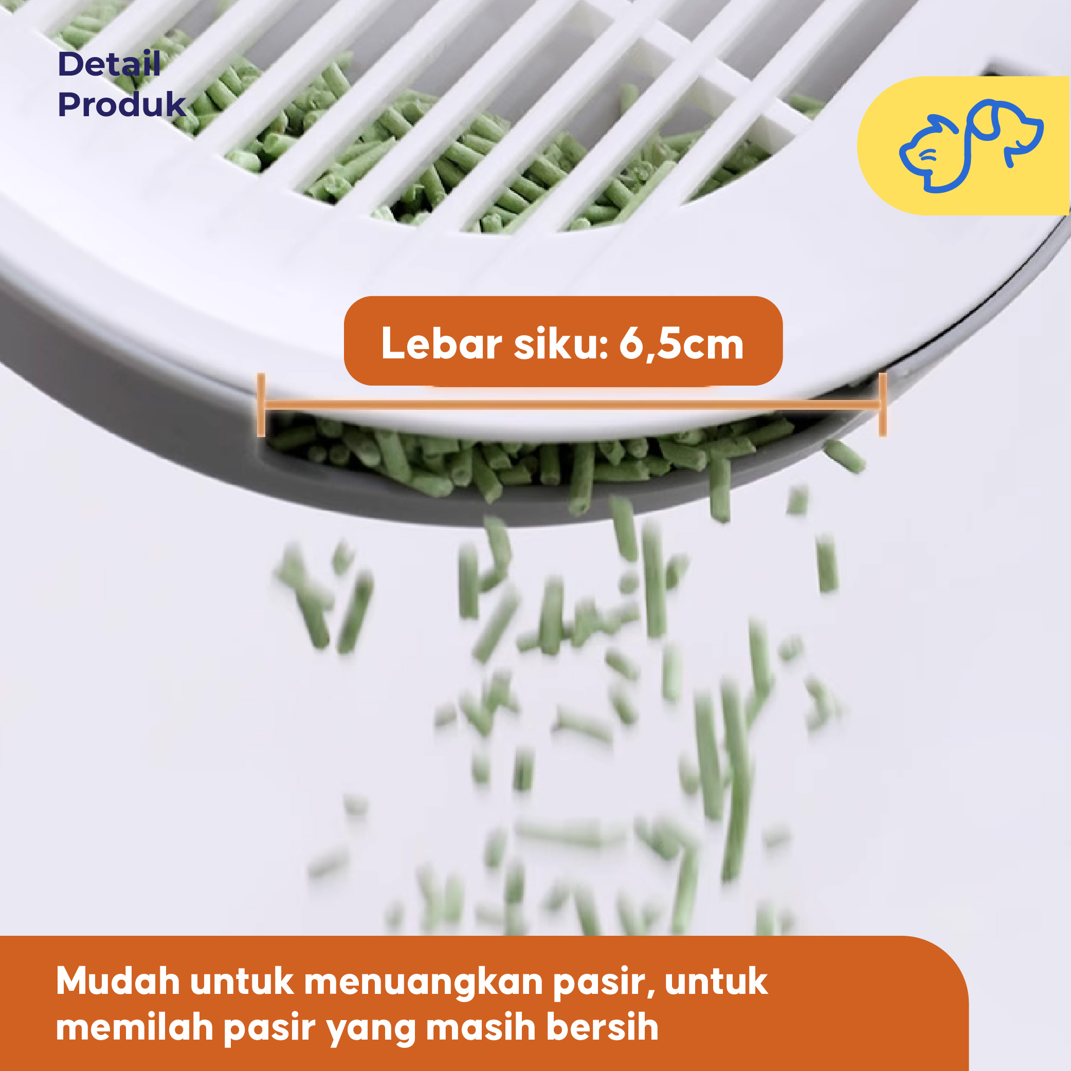 Pembuangan Pasir — Terdapat rongga sebesar 6 cm yang dapat mengeluarkan pasir. Pawparents dapat memilah pasir yang dapat digunakan kembali untuk anabul.