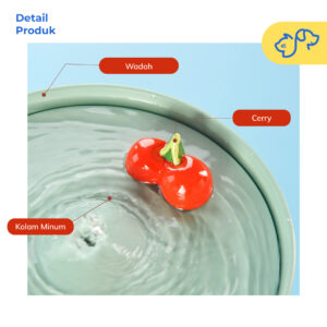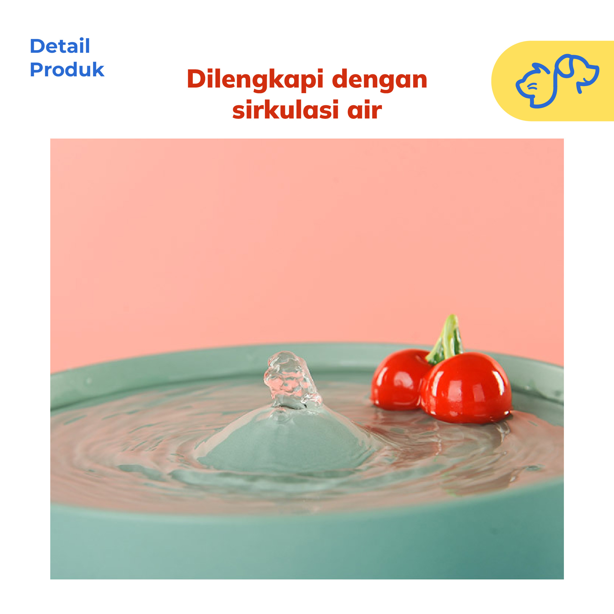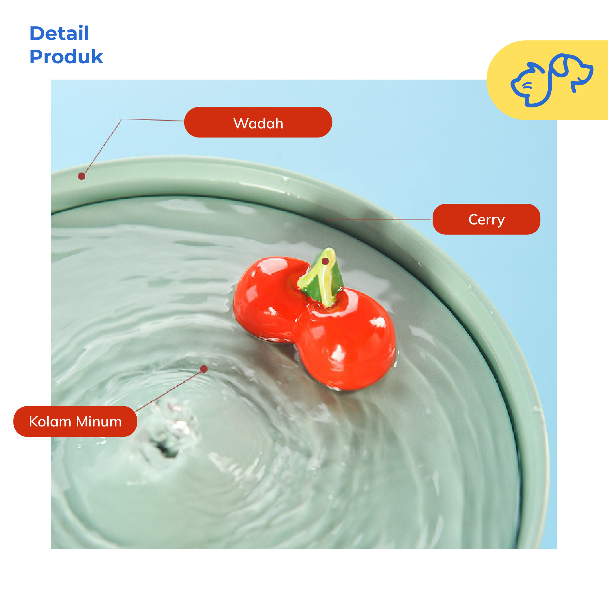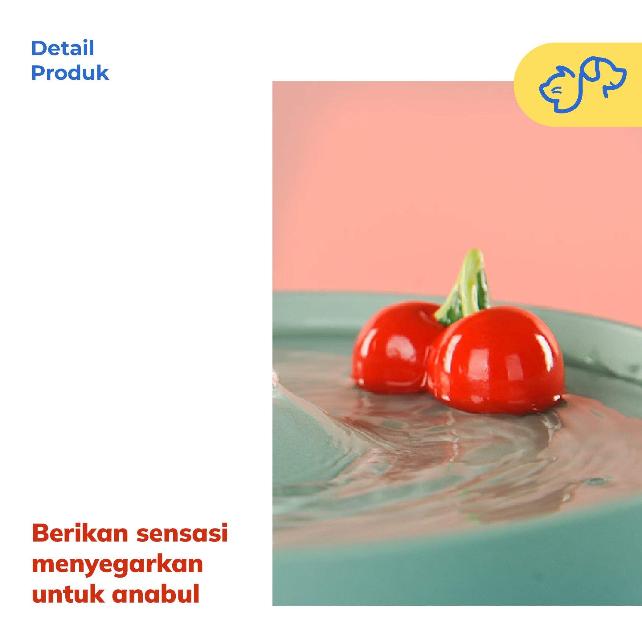 Water fountain keramik dengan hiasan cherry ini dirancang untuk memastikan anabul terhidrasi dengan baik karena sirkulasi air yang terus menerus menarik minat anabul untuk minum lebih sering