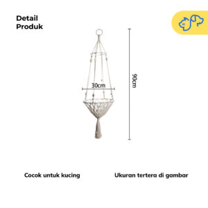 Warna yang cantik dan desain minimalisnya membuat tempat tidur gantung ini cocok dipasang di sudut favorit rumahmu. Terbuat dari bahan berkualitas membuat anabul menikmati waktu istirahat dengan tenang dan penuh gaya.