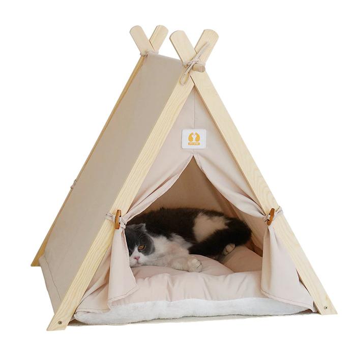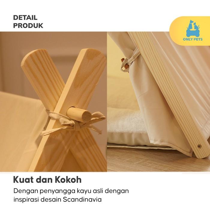 Terinspirasi desain ala Skandinavia yang diaplikasikan dengan penyangga kayu asli, membuat Pet Tent ini memiliki struktur rangka yang kuat, kokoh, dan tidak mudah roboh.