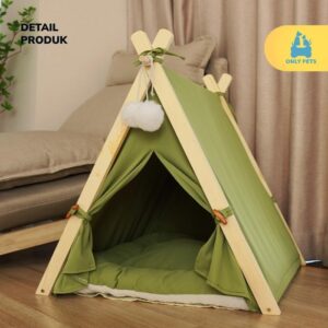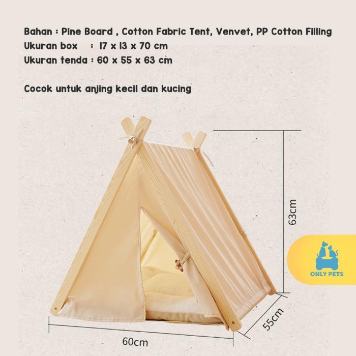 Pet Tent ini terbuat dari berbagai macam bahan berkualitas pilihan, seperti pine board, cotton fabric tent, velvet fabric, dan PP cotton filling.