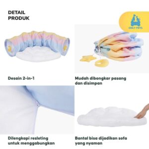 Selain itu, mainan ini didesain 2-in-1, artinya Pawparents dapat memasang terowongan dan bantal awan secara terpisah sesuai kebutuhan, atau Pawparents dapat menggabungkan keduanya menggunakan resleting yang telah tersedia.