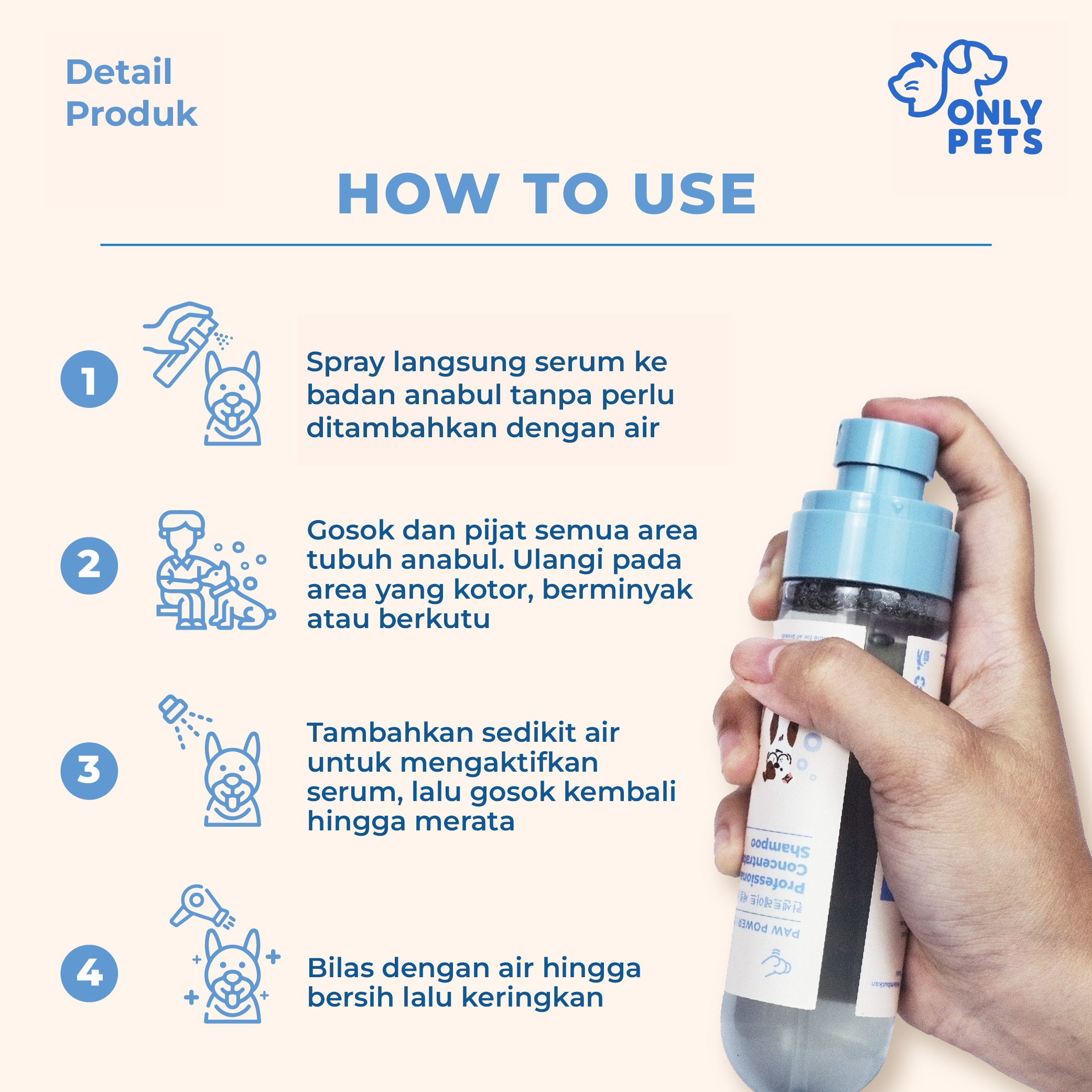 Cepat, Hemat, dan Efektif berikan yang terbaik untuk anabul tersayang dengan grooming mandiri layaknya perawatan salon dengan Professional High Concentrate Serum Shampoo dari Paw Power.